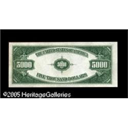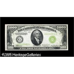 <B>Fr. 2221-G $5000 1934 Federal Reserve Note. Choice About Uncirculated.</B></I><BR>A lovely example which displays just a bit too much handling to merit the uncirculated grade. Expect this very pretty specimen to reach or exceed... Lot:16604