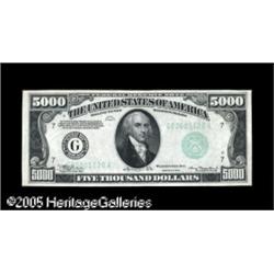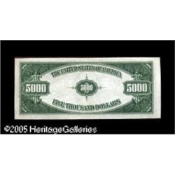 <B>Fr. 2221-G $5000 1934 Federal Reserve Note. Extremely Fine-About Uncirculated.</B></I><BR>A high grade example. It's listed as CU in the new Sullivan census, but it bears a center fold and considerable evidence of other handling. Lot:16605
