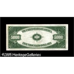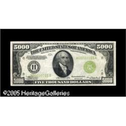 <B>Fr. 2221-H $5000 1934 Federal Reserve Note. About Uncirculated.</B></I><BR>An attractive example which comes close to the full uncirculated grade, which is how it is listed on the new Sullivan census. It's still a brightly printed and well centered specimen which is certain to delight its fortunate new owner. Lot:16607