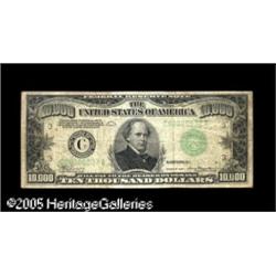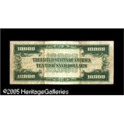 <B>Fr. 2231-C $10000 1934 Federal Reserve Note. Fine.</B></I><BR>This is one of the scarcer districts, with just four examples recorded in the new Sullivan census. While quite well circulated, this note has retained decent color and displays no problems whatever save for a bit of soiling on the back. Lot:16616