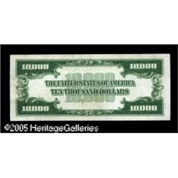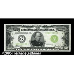 <B>Fr. 2231-G $10000 1934 Federal Reserve Note. Crisp Uncirculated.</B></I><BR>A lovely note with great color and eye appeal. There is one tiny corner tip fold, without which we would not hesitate to describe this example as Choice Crisp Uncirculated. If you are looking for a perfect type example to cover the denomination, this is an excellent place to start. Lot:16619