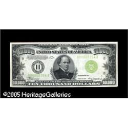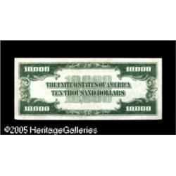 <B>Fr. 2231-H $10000 1934 Federal Reserve Note. About Uncirculated.</B></I><BR>The note is bright and the color excellent, but the paper is flat and the surfaces a bit fuzzy. There is one small restoration in the bottom margin which is quite well concealed. Lot:16621