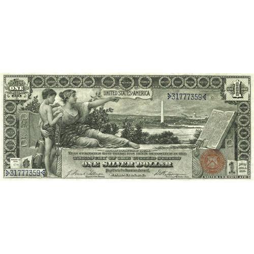 <B>Fr. 224 $1 1896 Silver Certificate About New.</B></I> Two light vertical folds are seen with much coaxing. Still a colorful example of the ever popular educational Ace.