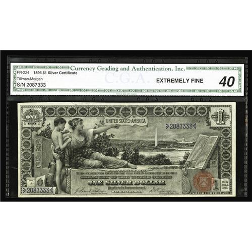 <B>Fr. 224 $1 1896 Silver Certificate CGA Extremely Fine 40.</B></I> A handsome, nicely margined Educational Ace.
