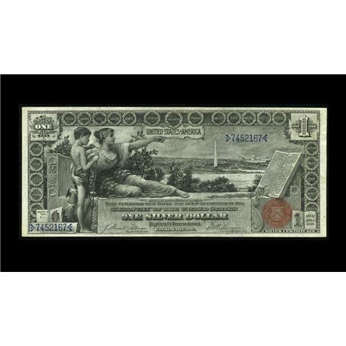 <B>Fr. 224 $1 1896 Silver Certificate Choice About New.</B></I> An extremely light vertical fold well away from the center separates this strictly original, nicely margined $1 Ed from the Choice New grade.