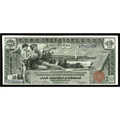 <B>Fr. 224 $1 1896 Silver Certificate Extremely Fine.</B></I> This pleasing Educational Ace has endured three folds, but remains quite bright and fresh.