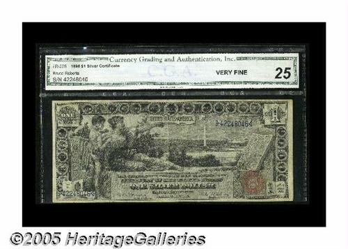 <B>Fr. 225 $1 1896 Silver Certificate CGA Very Fine 25.</B></I> An evenly circulated example of the popular One Dollar Educational type.