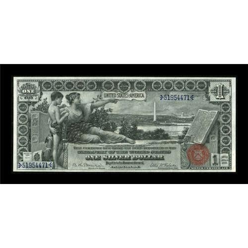 <B>Fr. 225 $1 1896 Silver Certificate Choice About New.</B></I> The softest of center bends is noticed on this well embossed note. The color rivals that found on new examples.<BR><BR><b>Shipping:</b> Coins & Currency (<a target="_blank" href="http://www.heritageauctions.com/common/shipping.php">view shipping information</a>)