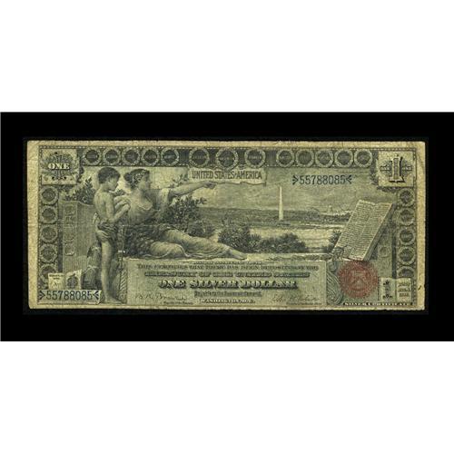 <B>Fr. 225 $1 1896 Silver Certificate Very Good.</B></I> As expected on a circulated $1 Ed in VG, some minor edge splits are noted, but none even encroach on the design.<BR><I>From The Plymouth Rock Collection</B></I>
