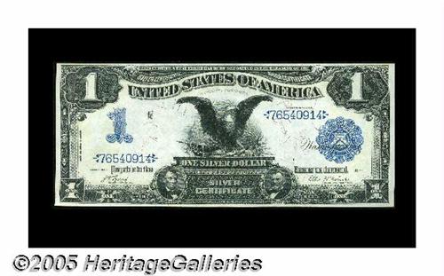 <B>Fr. 226 $1 1899 Silver Certificate Choice About New.</B></I> Bold embossing stands out on this sightly Black Eagle that reveals a trace of center fold.