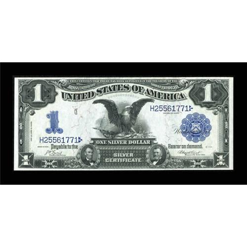<B>Fr. 227 $1 1899 Silver Certificate Choice About New.</B></I> Excellent colors and white paper are found on this Black Eagle with a faint center fold.<BR><BR><b>Shipping:</b> Coins & Currency (<a target="_blank" href="http://www.heritageauctions.com/common/shipping.php">view shipping information</a>)