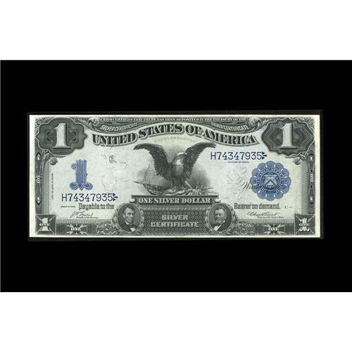 <B>Fr. 227 $1 1899 Silver Certificate Choice New.</B></I> Embossing claims this handsome Black Eagle.