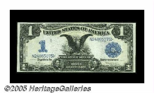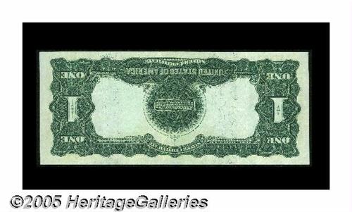 <B>Fr. 228 $1 1899 Inverted Reverse Silver Certificate Almost Extremely Fine.</B></I> Inverted reverse Black Eagles are scarce, with this example sporting light folds, wonderful color and embossing.