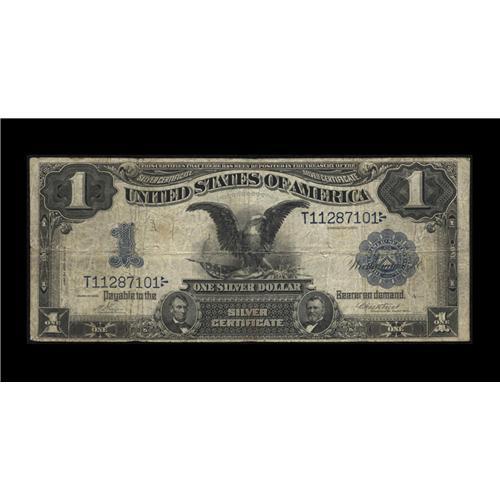 <B>Fr. 228 $1 1899 Silver Certificate Fine.</B></I>This is one of the better looking notes out of a batch of Black Eagle inverts we are offering.