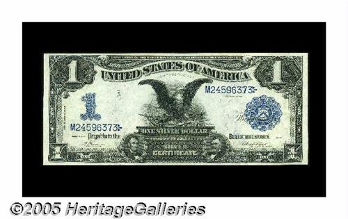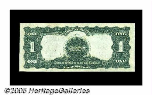 <B>Fr. 228 $1 1899 Silver Certificate Superb Gem New.</B></I> A simply flawless Black Eagle, with broad, even margins, ideal centering of both sides, perfect colors and good original embossing. Just about as good as it gets. When Eagles this nice are seem, they are generally Fr. 226's, Fr. 233's or Fr. 236's. Fr. 228's for some reason are hard to find this nice.