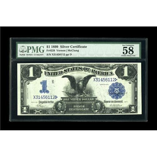 Fr. 229 $1 1899 Silver Certificate PMG Choice About Unc Fr. 229 $1 1899 Silver Certificate PMG Choic
