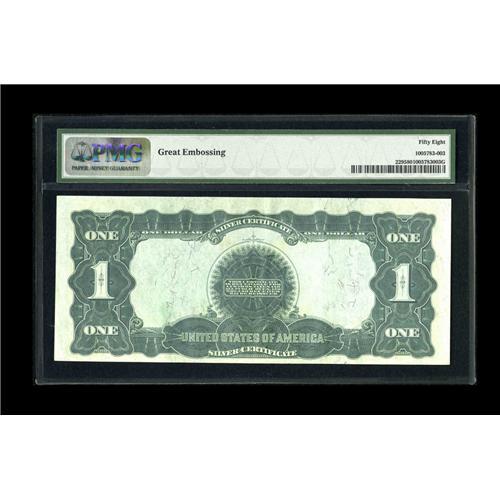 <B>Fr. 229 $1 1899 Silver Certificate PMG Choice About Unc 58.</B></I> Consecutive with and identical to the previous lot, including the PMG comment, "Great Embossing."