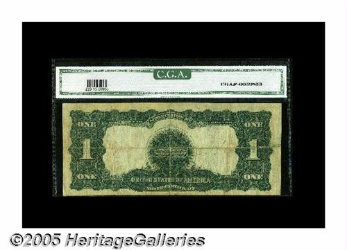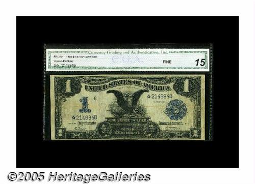 <B>Fr. 229 $1 1899 Silver Certificate Star Note CGA Fine 15.</B></I> A just plain scarce star number with only about 20 pieces reported extant in all grades combined.