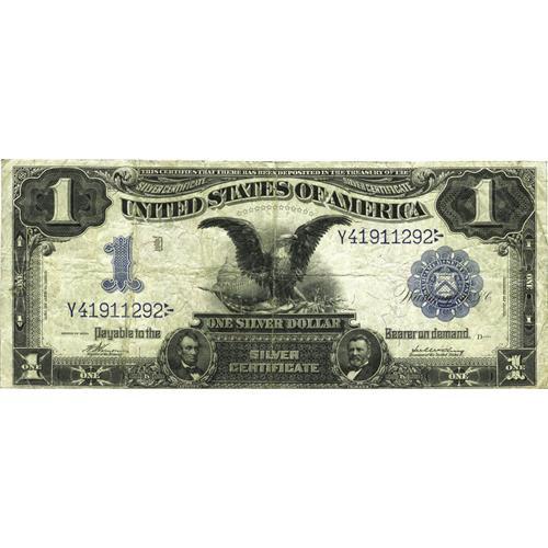<B>Fr. 229a $1 1899 Silver Certificate Fine.</B></I> Natural paper surfaces and even circulation are features of this rare Black Eagle. There are not enough of these to go around and we are indeed fortunate to have two in this auction.