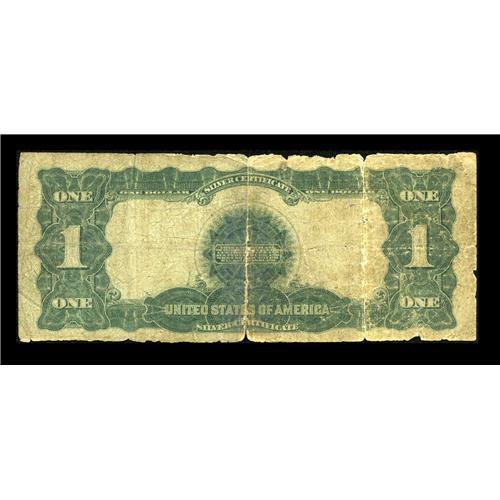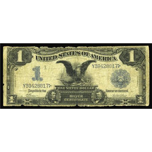 <B>Fr. 229a $1 1899 Silver Certificate Good-Very Good.</B></I> Offered singly in spite of its low grade, a repaired tear, and margin roughness, as this is the rarest of the Black Eagles and very much in demand in all grades.