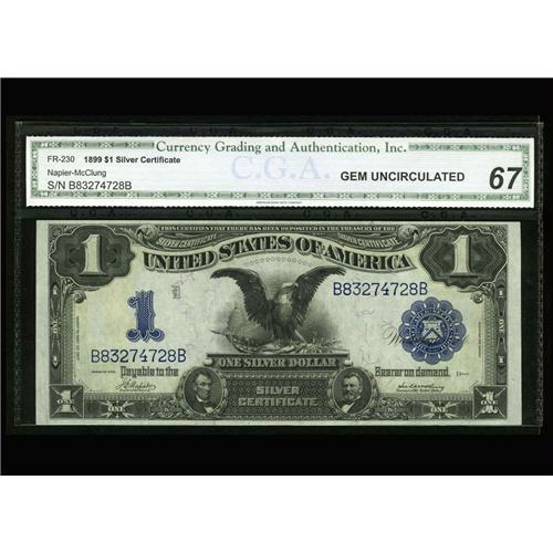 Fr. 230 $1 1899 Silver Certificate CGA Gem 67 Fr. 230 $1 1899 Silver Certificate CGA Gem Uncirculate