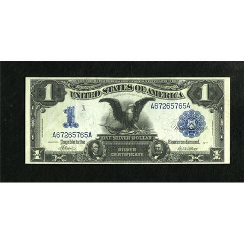 <B>Fr. 230 $1 1899 Silver Certificate Extremely Fine+.</B></I> Three horizontal folds are noticed on this bright note with strong embossing.<BR><BR><b>Shipping:</b> Coins & Currency (<a target="_blank" href="http://www.heritageauctions.com/common/shipping.php">view shipping information</a>)