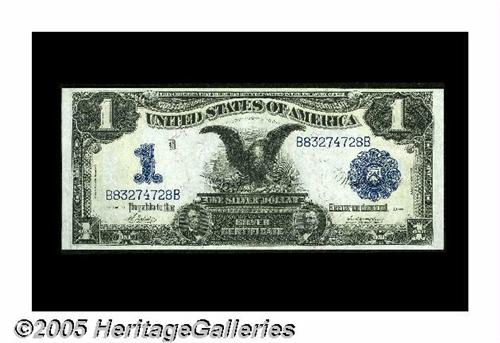 <B>Fr. 230 $1 1899 Silver Certificate Gem New.</B></I> An excellent example, with flawless originality, strong embossing and premium wide margins at top and bottom on this notoriously tightly cut design type.