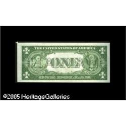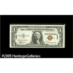 <B>Fr. 2300 $1 1935A Hawaii Silver Certificate About Uncirculated.</B></I> There is a miniscule attached tab on the upper right corner which makes this Hawaii note interesting and a fold at the lower right corner which makes it About Uncirculated. Lot:15304