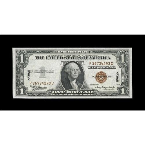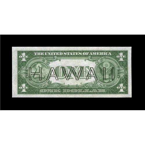 <B>Fr. 2300 $1 1935A Hawaii Silver Certificate. Gem Crisp Uncirculated.</B></I><BR>This example from the P-C block is well margined with prominent embossing.