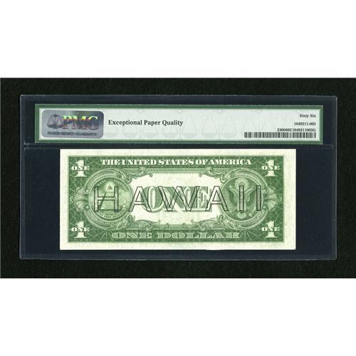 <B>Fr. 2300 $1 1935A Hawaii Silver Certificate. PMG Gem Uncirculated 66 EPQ.</B></I><BR>A perfectly margined and well embossed issue.<BR><BR><b>Shipping:</b> Coins & Currency (<a target="_blank" href="http://www.heritageauctions.com/common/shipping.php">view shipping information</a>)