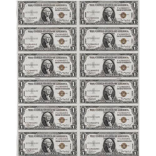 <B>Fr. 2300 $1 1935A Hawaii Silver Certificates. Uncut Sheet of 12. Gem Crisp Uncirculated.</B></I><BR>This is a simply incredible uncut sheet of Hawaii notes, all unimpeachable, original gems possessing white paper and dark inks. This Hawaii sheet also represents a new low serial number for the Oakes-Schwartz small size reference. Expect some real excitement among the bidders when this sheet crosses the auction block tonight.<BR><I>From The Wilhelmina Collection</B></I><BR><BR><b>Shipping:</b> Coin/Currency (<a target="_blank" href="http://www.heritageauctions.com/common/shipping.php">view shipping information</a>)