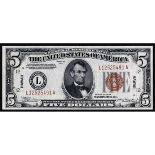 Fr. 2301. 1934 $5 Federal Reserve Note. Hawaii. Non-Mule. PMG Choice Uncirculated 64.