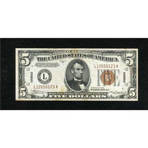 Fr. 2301 $5 1934 Hawaii Federal Reserve Note. Cr