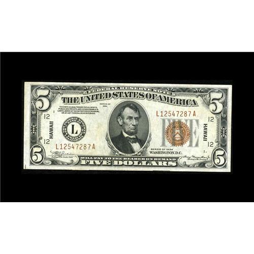 Fr. 2301 $5 1934 Hawaii Federal Reserve Note. Gem Crisp Fr. 2301 $5 1934 Hawaii Federal Reserve Note