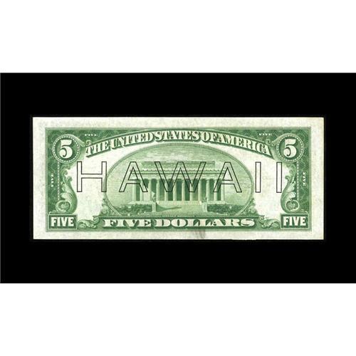 <B>Fr. 2301 $5 1934 Hawaii Federal Reserve Note. Gem Crisp Uncirculated.</B></I><BR>This attractive emergency issue has original paper and ideal margins.