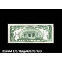 Fr. 2301 $5 1934 Hawaii Federal Reserve Note. Extremely Fine.The very scarce non-Mule $5 Hawaii note. This example is a beauty which is new but for three light folds. <BR><BR><B>Important notice:</B> Heritage usually auctions material at the rate of 200-250 lots per hour. On some occasions eBay Live bid software or the Internet may not be able to keep up with the pace of the auction. We recommend placing a realistic absentee bid now as insurance to avoid disappointment. Occasionally the auctioneer may eliminate or reject an eBay Live bid, and the auctioneer may also reopen a lot after the close of the eBay live bidding (usually because we missed an audience bid), and may reject your bid even if it shows you as the winning bidder. By bidding via eBay Live, you agree that Heritage may award the lot to another bidder at its sole discretion under the circumstances described above or any other reasonable circumstances. Since eBay bids are not shown to us until we open the lot on the floor, we treat those bids just like floor bids. In most cases the floor responds before the eBay bid is presented to us, due to Internet lag time, so for consistency we have made it a policy that floor bids are always considered first over tie eBay live bids. Also please note that all Heritage lots purchased through eBay Live carry a 20% Buyer's Premium. Please make sure you read the Terms and Conditions before you bid. <BR><BR><B>IMPORTANT ANNOUNCEMENT ABOUT RESERVES:</B> Heritage now divulges all reserves on its web site 7 days before every auction. If you want to know whether the reserve on this lot has been met, and if not, what the reserve amount is, please visit this lot page on the HeritageCoin.com web site, or email: bid@HeritageGalleries.com