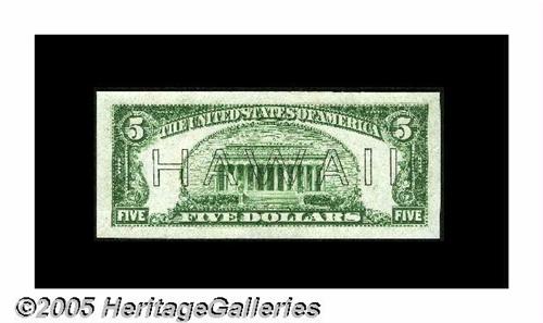 <B>Fr. 2301 $5 1934 Hawaii Mule Federal Reserve Note. Gem Crisp Uncirculated.</B></I><BR>A fresh and well-centered example of this very popular note.