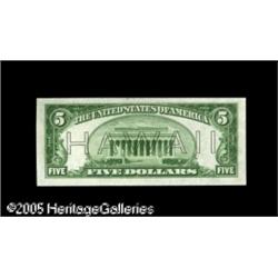 <B>Fr. 2301 $5 1934 Mule Hawaii Federal Reserve Note. Gem Crisp Uncirculated.</B></I><BR>A lovely example with perfect centering and full originality. Lot:16634