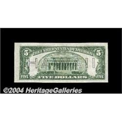 Fr. 2302 $5 1934-A Hawaii Federal Reserve Note. Very Choice Crisp Uncirculated.Very close to the full gem grade, but the slightest evidence of very light aging in the top margin keeps this from the gem designation. <BR><BR><B>Important notice:</B> Heritage usually auctions material at the rate of 200-250 lots per hour. On some occasions eBay Live bid software or the Internet may not be able to keep up with the pace of the auction. We recommend placing a realistic absentee bid now as insurance to avoid disappointment. Occasionally the auctioneer may eliminate or reject an eBay Live bid, and the auctioneer may also reopen a lot after the close of the eBay live bidding (usually because we missed an audience bid), and may reject your bid even if it shows you as the winning bidder. By bidding via eBay Live, you agree that Heritage may award the lot to another bidder at its sole discretion under the circumstances described above or any other reasonable circumstances. Since eBay bids are not shown to us until we open the lot on the floor, we treat those bids just like floor bids. In most cases the floor responds before the eBay bid is presented to us, due to Internet lag time, so for consistency we have made it a policy that floor bids are always considered first over tie eBay live bids. Also please note that all Heritage lots purchased through eBay Live carry a 20% Buyer's Premium. Please make sure you read the Terms and Conditions before you bid. <BR><BR><B>IMPORTANT ANNOUNCEMENT ABOUT RESERVES:</B> Heritage now divulges all reserves on its web site 7 days before every auction. If you want to know whether the reserve on this lot has been met, and if not, what the reserve amount is, please visit this lot page on the HeritageCoin.com web site, or email: bid@HeritageGalleries.com