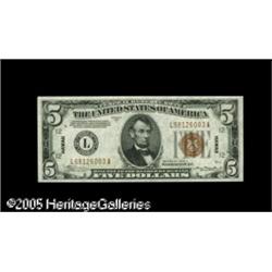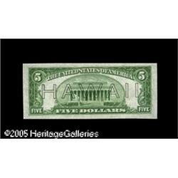 <B>Fr. 2302 $5 1934A Hawaii Federal Reserve Note. Choice Crisp Uncirculated.</B></I><BR>A tiny corner bump and a bit of counting soil on the back are all that hold this note from the gem designation. Lot:16639