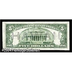 Fr. 2302 $5 1934A Hawaii Federal Reserve Note. Gem Cr <B>Fr. 2302 $5 1934A Hawaii Federal Reserve Note. Gem Crisp Uncirculated.</B></I><BR>A beautiful note with full original embossing and the appearance of an item pulled from the pack this morning. Certainly one of the nicest Hawaii $5s that we have seen or offered, and one of the few that we have seen where the Superb label could readily apply. <BR><BR><B>Important notice:</B> Heritage usually auctions material at the rate of 200-250 lots per hour. On some occasions eBay Live bid software or the Internet may not be able to keep up with the pace of the auction. We recommend placing a realistic absentee bid now as insurance to avoid disappointment. Occasionally the auctioneer may eliminate or reject an eBay Live bid, and the auctioneer may also reopen a lot after the close of the eBay live bidding (usually because we missed an audience bid), and may reject your bid even if it shows you as the winning bidder. By bidding via eBay Live, you agree that Heritage may award the lot to another bidder at its sole discretion under the circumstances described above or any other reasonable circumstances. Since eBay bids are not shown to us until we open the lot on the floor, we treat those bids just like floor bids. In most cases the floor responds before the eBay bid is presented to us, due to Internet lag time, so for consistency we have made it a policy that floor bids are always considered first over tie eBay live bids. Also please note that all Heritage lots purchased through eBay Live carry a 20% Buyer's Premium. Please make sure you read the Terms and Conditions before you bid. This lot is being auctioned in conjunction with a live floor auction by Heritage Galleries & Auctioneers. All final auction and invoice information will be supplied by Heritage Galleries & Auctioneers, and all other information should be considered preliminary. Lot:16551