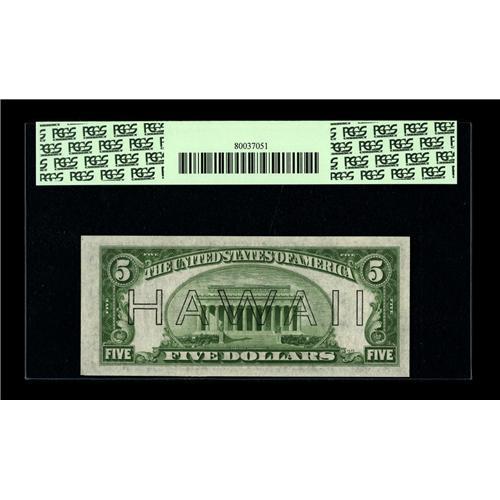 <B>Fr. 2302 $5 1934A Hawaii Federal Reserve Note. PCGS Very Choice New 64PPQ.</B></I><BR>A tight left margin has taken away the chance at a Gem grade for this island issue.<BR><I>From The Bill and Kathy Stella Currency Collection</B></I><BR><BR><b>Shipping:</b> Coin/Currency (<a target="_blank" href="http://www.heritageauctions.com/common/shipping.php">view shipping information</a>)