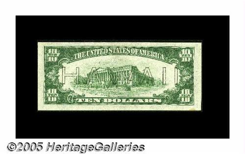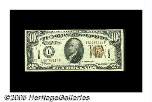 <B>Fr. 2303 $10 1934A Hawaii Federal Reserve Note. Choice Crisp Uncirculated.</B></I><BR>There is a small area of aging in the lower margin on the back, mentioned in the interest of full disclosure.