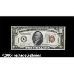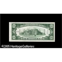 <B>Fr. 2303* $10 1934A Hawaii Federal Reserve Note. Choice Crisp Uncirculated.</B></I><BR>An extremely rare star with just 108,000 pieces produced. This example is utterly original and fully gem but for its centering, which is shifted a bit to the left. It's by far the finest $10 Hawaii star we've had to offer in any CAA sale, and will almost certainly well exceed the $8000 catalogue valuation in the new Oakes reference. Lot:16644