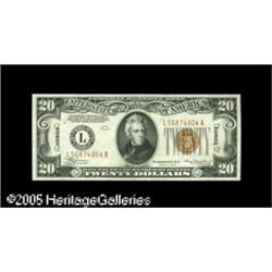 <B>Fr. 2304 $20 1934 Hawaii Mule Federal Reserve Note. Crisp Uncirculated.</B></I><BR>There are no evident folds, but the note is flat and lacks any sign of originality. Lot:16647