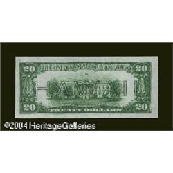 Fr. 2305 $20 1934A Hawaii Federal Reserve Note. Choic <B>Fr. 2305 $20 1934A Hawaii Federal Reserve Note. Choice Crisp Uncirculated.</B></I><BR>This unquestionably original Hawaii $20 would be classified without reservation as a Gem save for an unobtrusive counting wrinkle at right, which only serves to confirm its virginal and unmolested status. <BR><BR><B>Important notice:</B> Heritage usually auctions material at the rate of 200-250 lots per hour. On some occasions eBay Live bid software or the Internet may not be able to keep up with the pace of the auction. We recommend placing a realistic absentee bid now as insurance to avoid disappointment. Occasionally the auctioneer may eliminate or reject an eBay Live bid, and the auctioneer may also reopen a lot after the close of the eBay live bidding (usually because we missed an audience bid), and may reject your bid even if it shows you as the winning bidder. By bidding via eBay Live, you agree that Heritage may award the lot to another bidder at its sole discretion under the circumstances described above or any other reasonable circumstances. Since eBay bids are not shown to us until we open the lot on the floor, we treat those bids just like floor bids. In most cases the floor responds before the eBay bid is presented to us, due to Internet lag time, so for consistency we have made it a policy that floor bids are always considered first over tie eBay live bids. Also please note that all Heritage lots purchased through eBay Live carry a 20% Buyer's Premium. Please make sure you read the Terms and Conditions before you bid. This lot is being auctioned in conjunction with a live floor auction by Heritage Galleries & Auctioneers. All final auction and invoice information will be supplied by Heritage Galleries & Auctioneers, and all other information should be considered preliminary. Lot:16563
