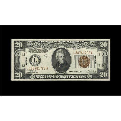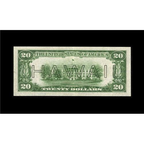 <B>Fr. 2305 $20 1934A Hawaii Federal Reserve Note. Choice About Uncirculated.</B></I><BR>A faint fold is noted on this otherwise uncirculated note.