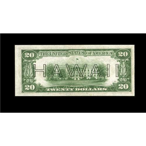 <B>Fr. 2305 $20 1934A Hawaii Federal Reserve Note. Very Choice Crisp Uncirculated.</B></I><BR>Embossing and dark inks are noticed on this war time note.