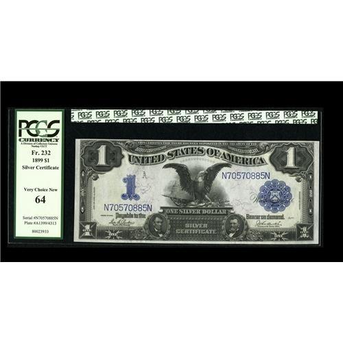 <B>Fr. 232 $1 1899 Silver Certificate PCGS Very Choice New 64.</B></I> This Black Eagle screams originality and was downgraded due to a tight top margin.