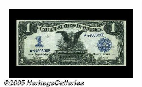 <B>Fr. 232 $1 1899 Silver Certificate Star Note About Uncirculated.</B></I> A lovely example which is very close to the full uncirculated designation. It's one of about thirty pieces known for this Friedberg number, and right up there with the nicest of that group.